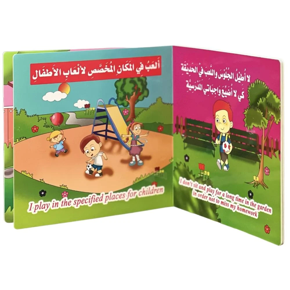 سلسلة تحتوي على ٤ كتب كرتونية بحواف مقوسه كل كتاب يحتوي على نصائح في السلوكيات الصحيحة العامة مثل :