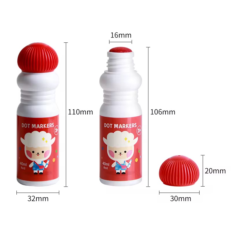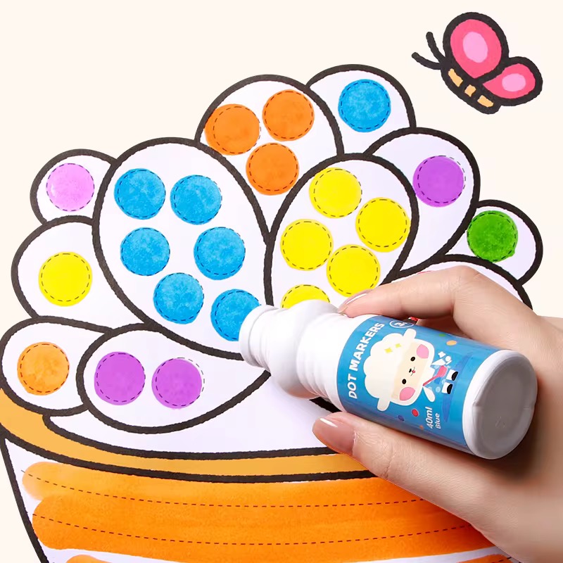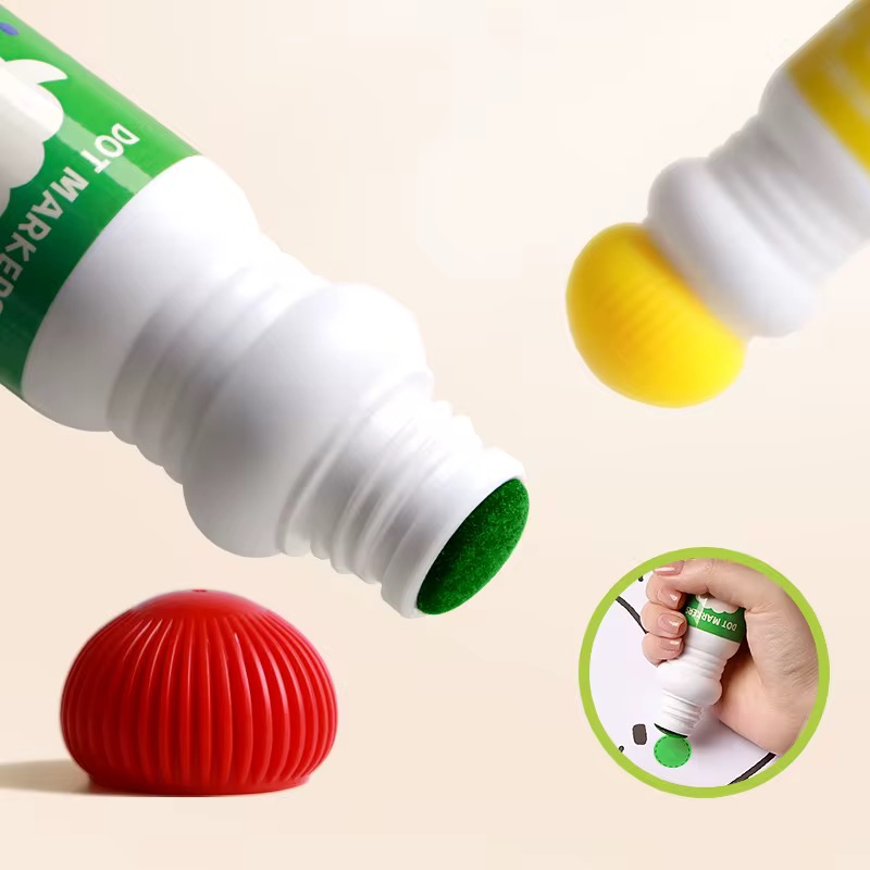 • بخلاف الألوان المائية أو الأصباغ، dot markers غالبًا ما تكون نظيفة ولا تترك فوضى كبيرة، وهو ما يجعلها مثالية للاستخدام المنزلي.
