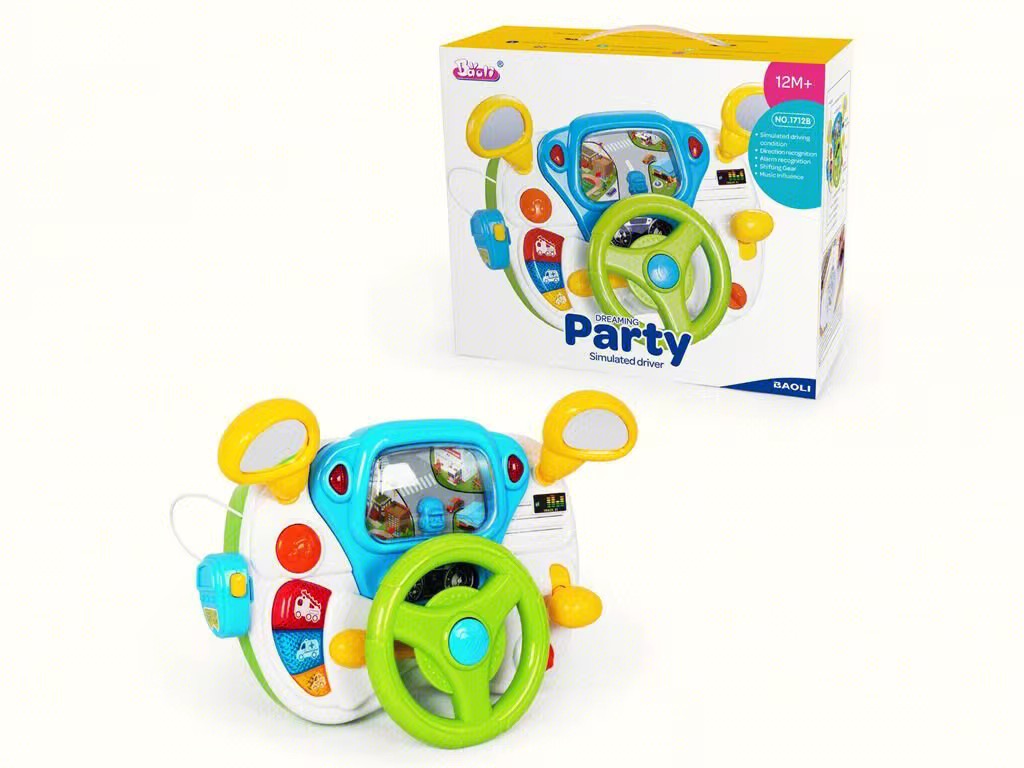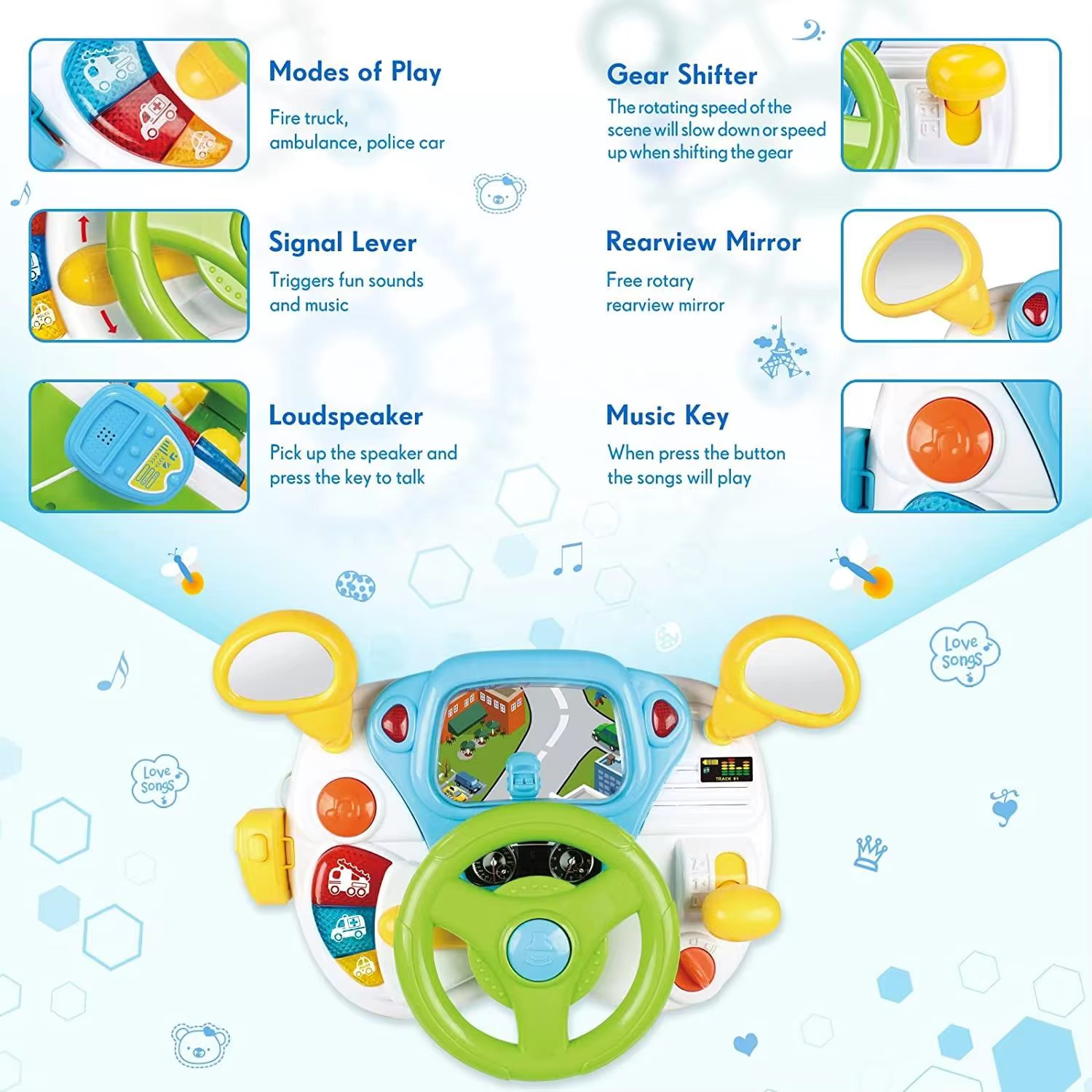 لعبة مسار السيارة و التحكم بالاتجاهات عن طريق المقود مع مكبر صوت و ازرار اصوات المركبات مع مرأه جانبية و بريك مع مفتاح التشغيل