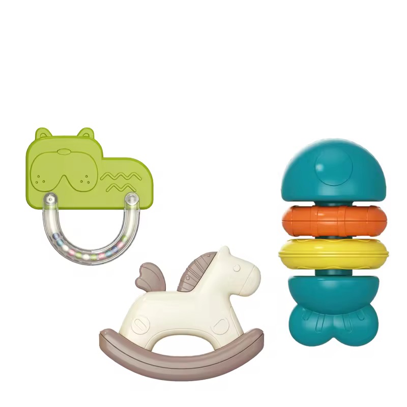 ١٠ قطع منوعة من العضاضات و العاب صوتيه صغيره تساعد الطفل عل مسك الاشياء