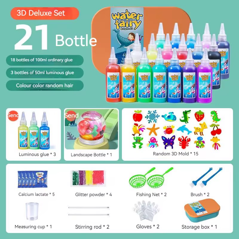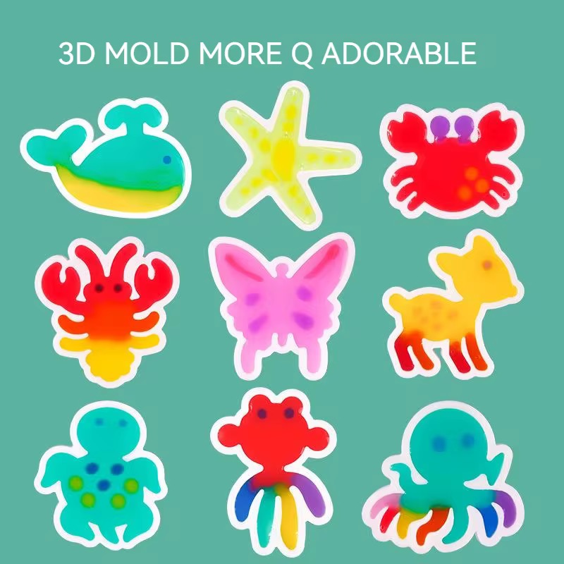 فكرة اللعبة : وضع ألوان خاصة على قوالب بأشكال حيوانات و انزلها في الماء ستنفصل لتكون حيوان مطاطي ناعم .