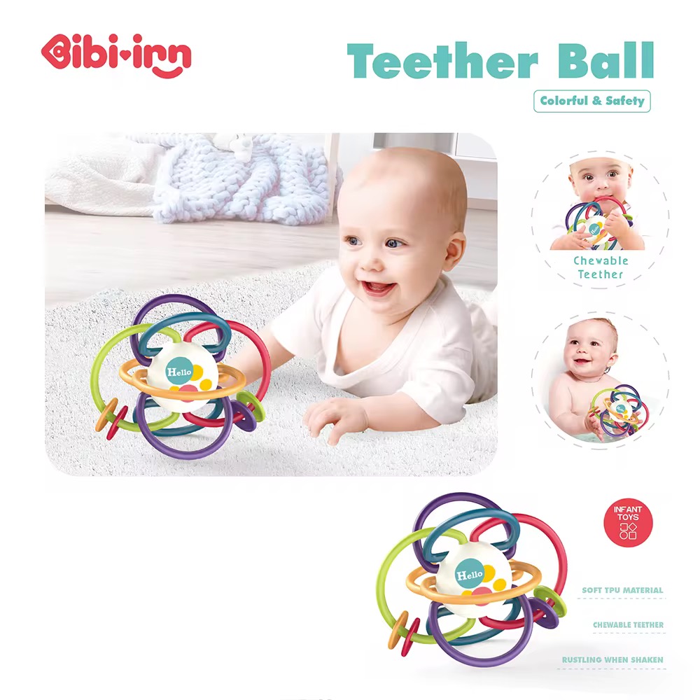 امنحي صغيرك تجربة لعب آمنة وممتعة مع كرة التسنين اللينة المصنوعة من مادة TPU الآمنة للأطفال.