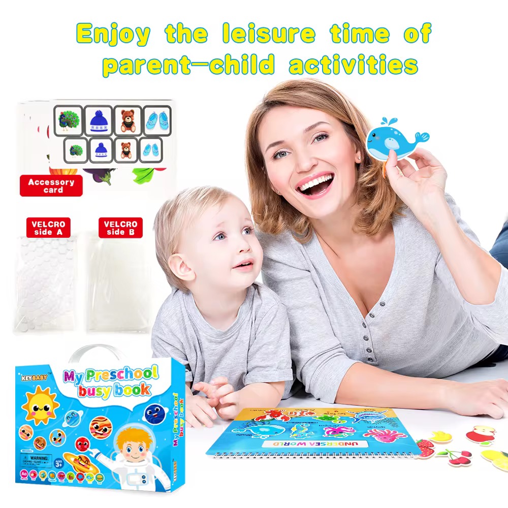 كتاب تفاعلي مميز مصمم للأطفال بعمر 3 سنوات فما فوق، يساعدهم على التعلم من خلال اللعب والاكتشاف. يحتوي على 12 موضوعًا تعليميًا ممتعًا تم إعدادها لتطوير مهارات الطفل في التركيز، واللغة، والتصنيف، والتفكير المنطقي، بطريقة مرحة وجذابة.